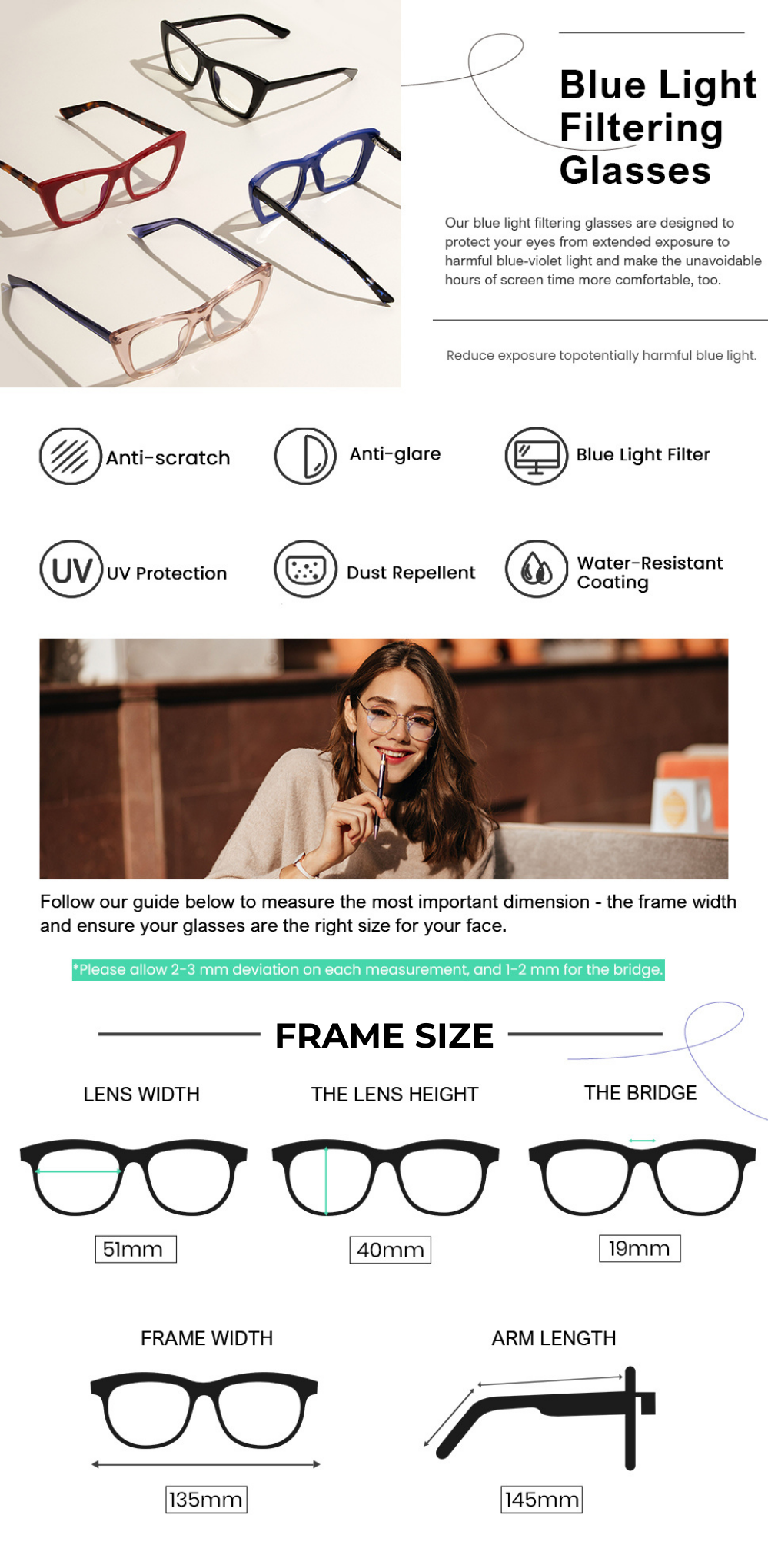 • Lens Width - Bridge - Arm: 51-19-145(mm)