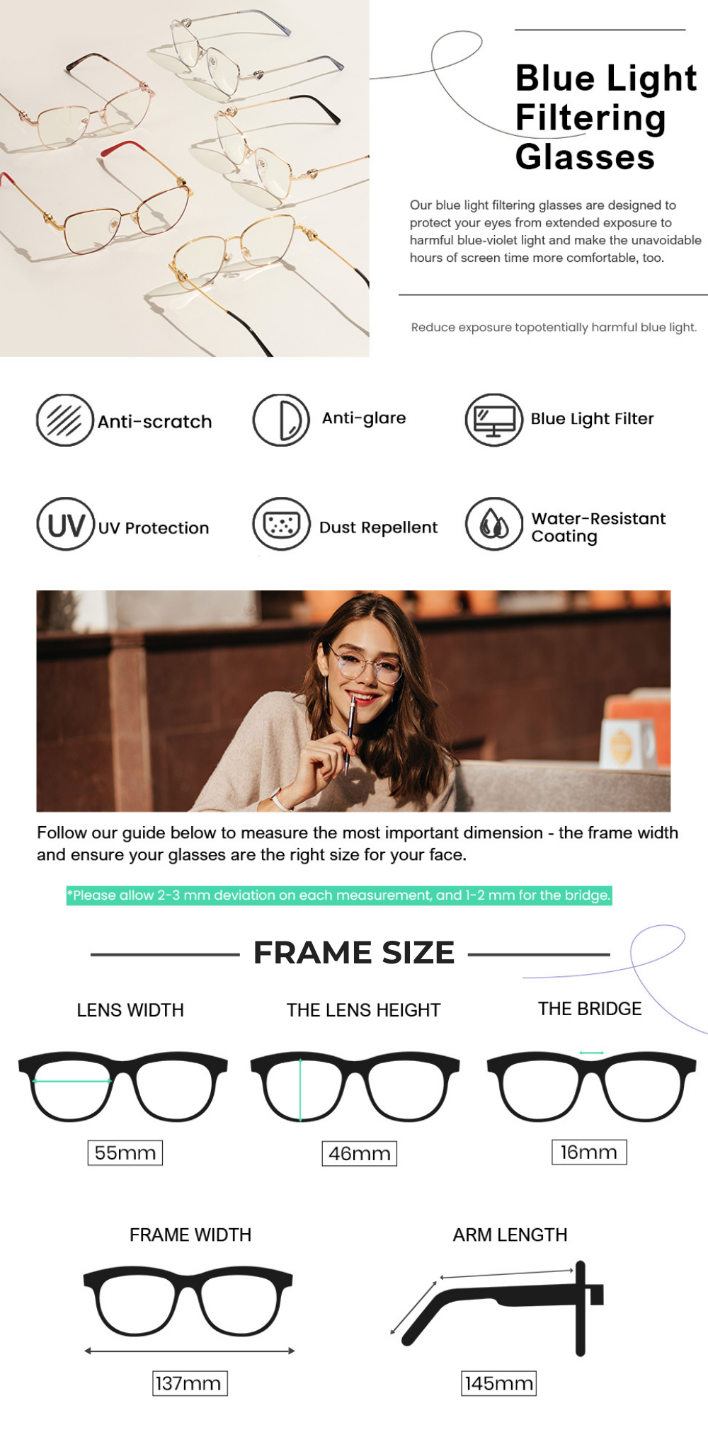 - Lens Width - Bridge - Arm: 55-16-145(mm)