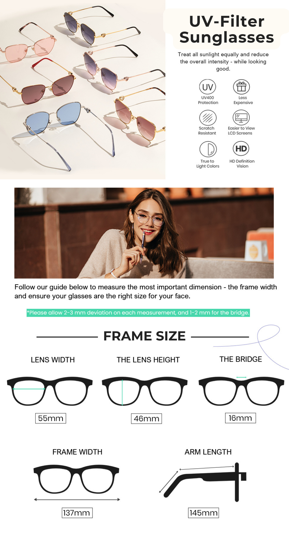 - Lens Width - Bridge - Arm: 55-16-145(mm)