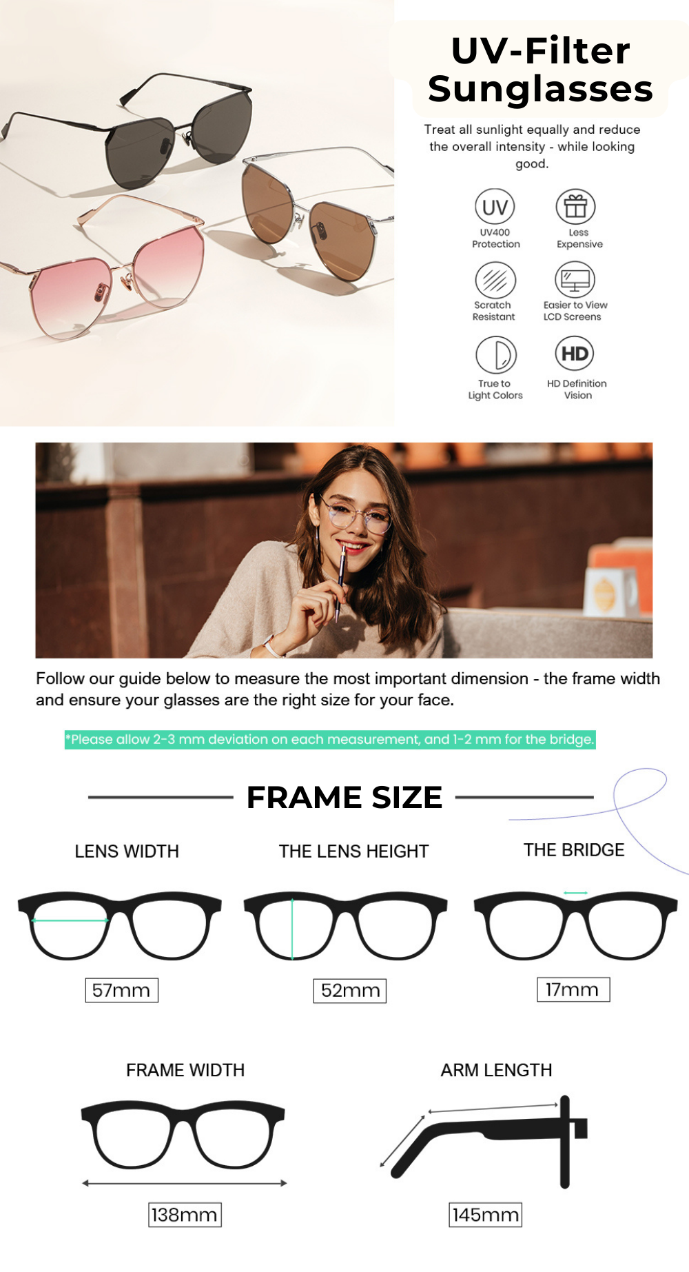 - Lens Width - Bridge - Arm: 57-17-145(mm)